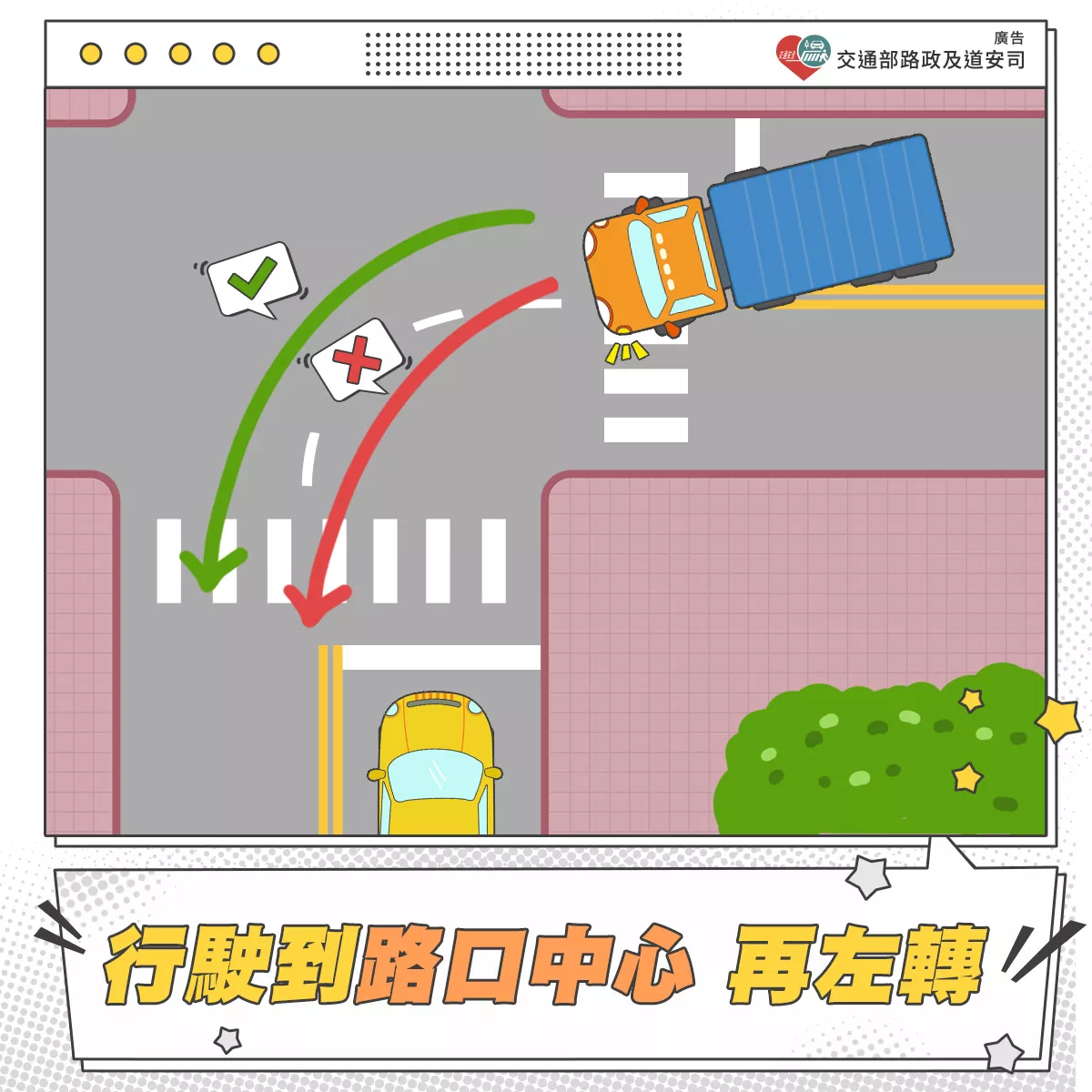 行駛到路口中心再左轉⬅️