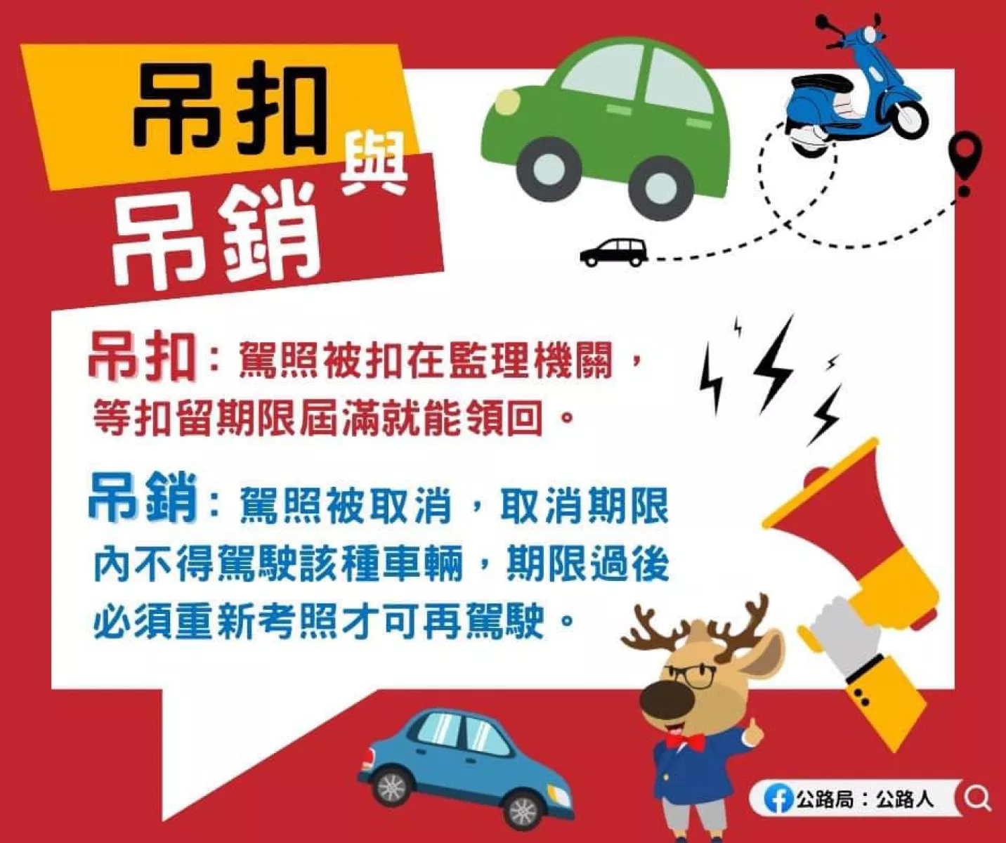 駕照直接被取消 駕駛人不再擁有駕駛權利。