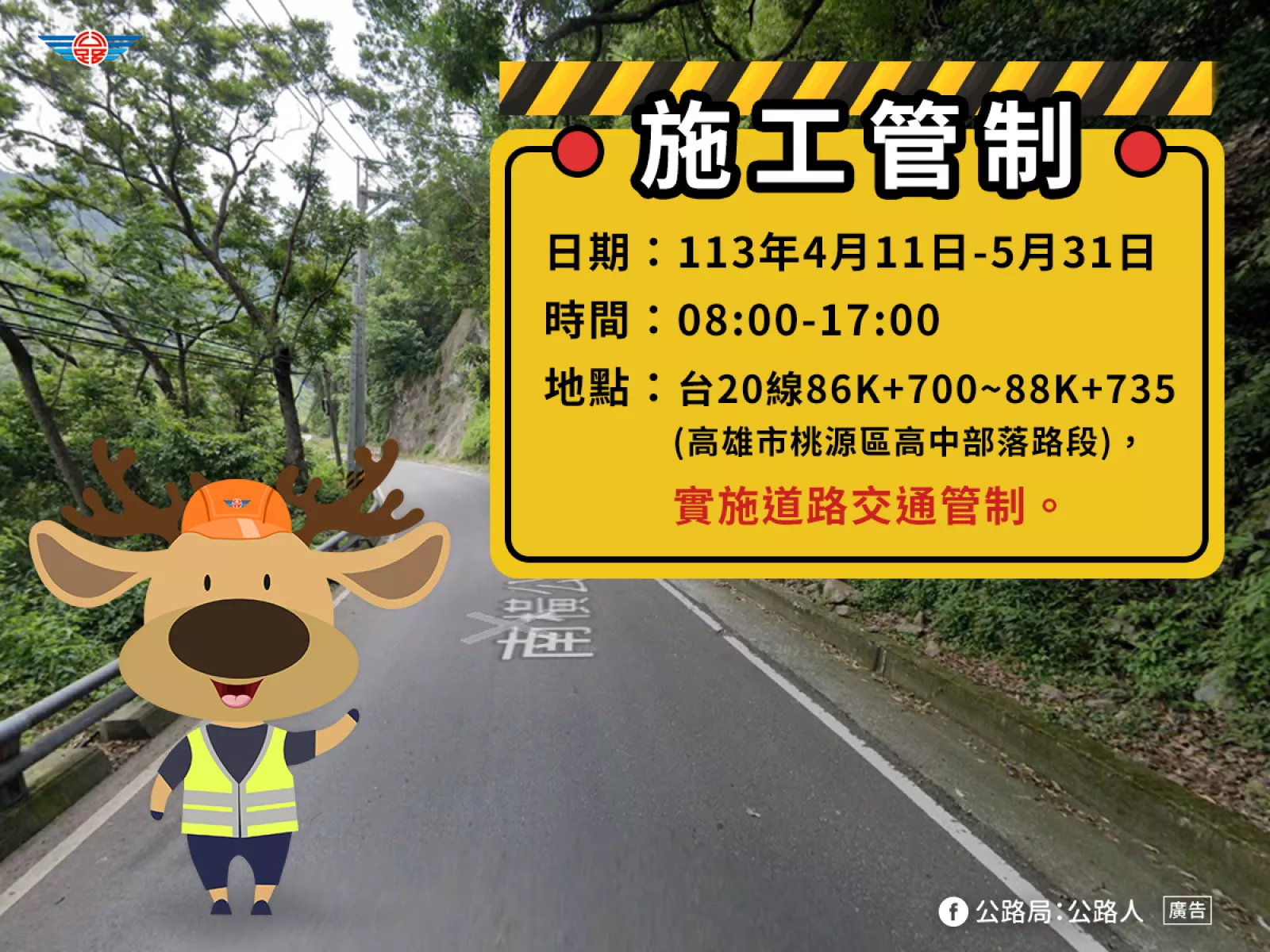 📢施工管制公告113/4/11-5/31 進行施工管制