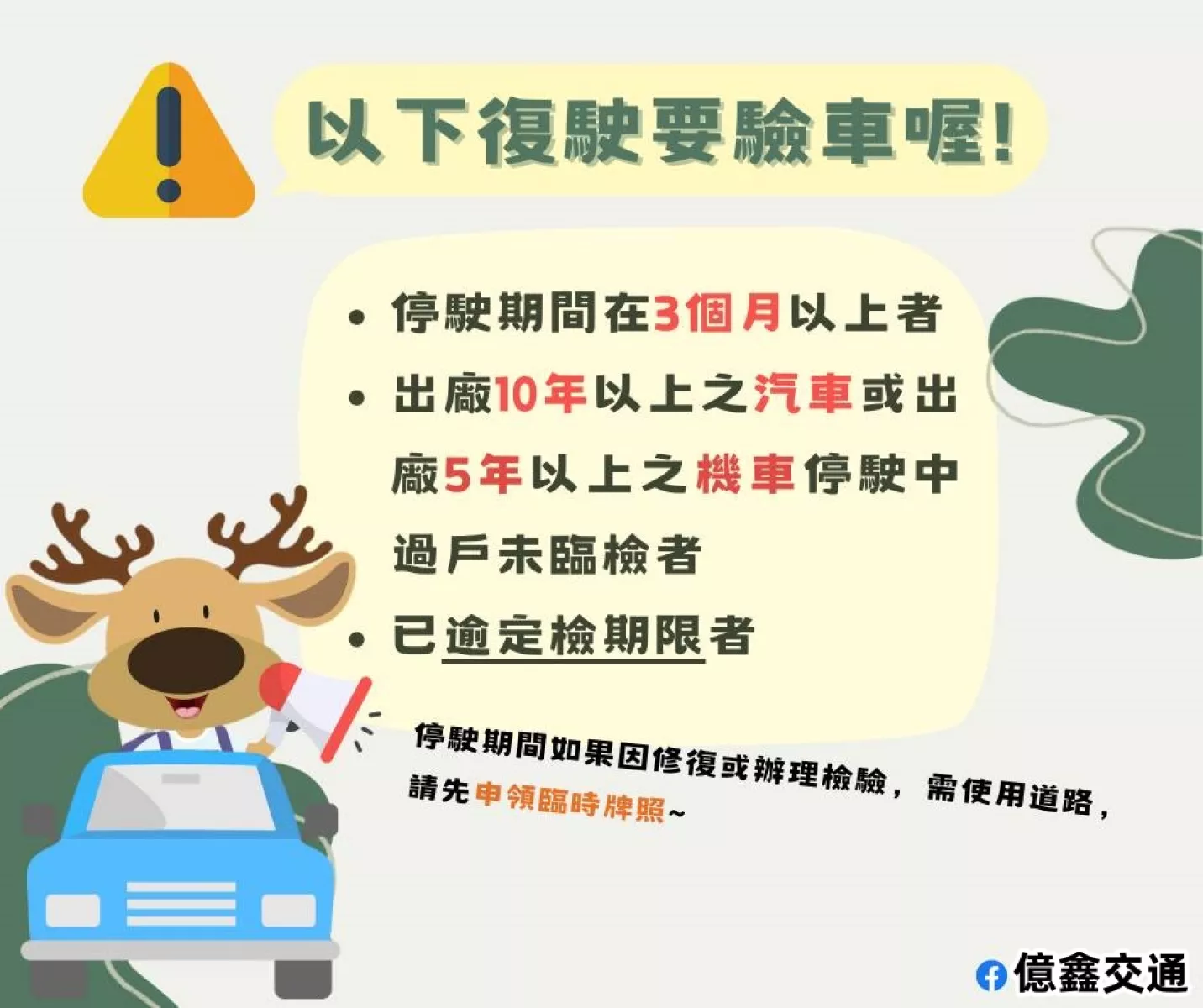 【監理大聲公📣】➡️我的車車要復駛~需要注意什麼??