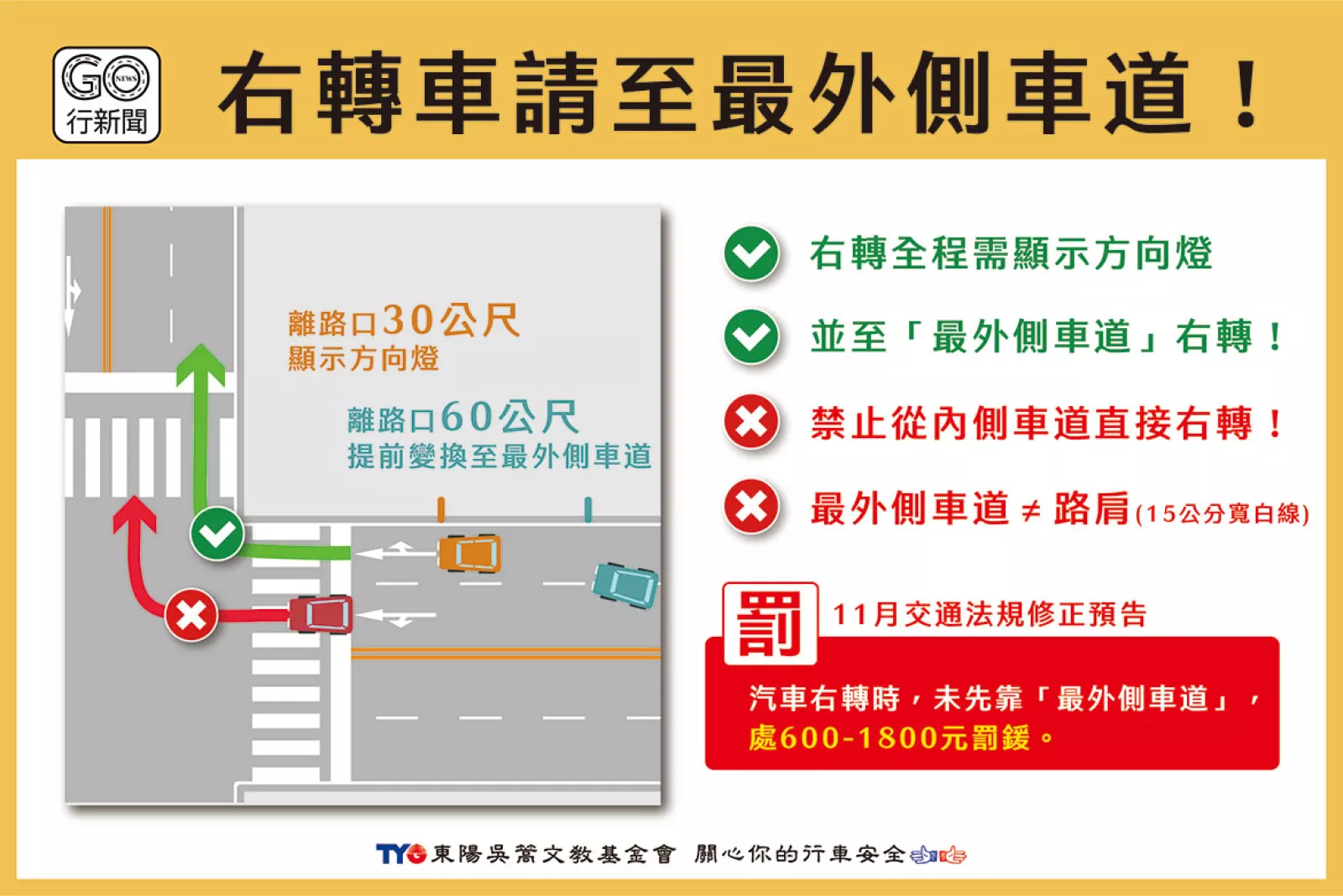 注意囉 11 月的交通新制右轉走「最外側」車道的規定