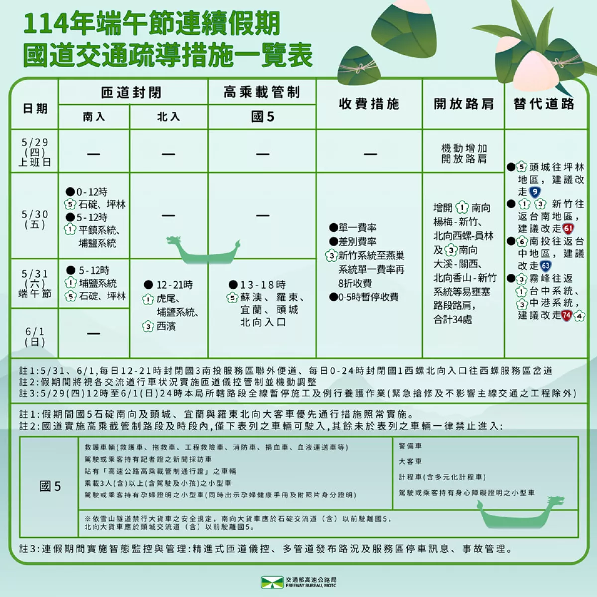 114年端午連假(5/30~6/1)就到啦❗行程規劃好了嗎?國道疏導措施備起來,讓你返鄉、出遊更順暢🚙