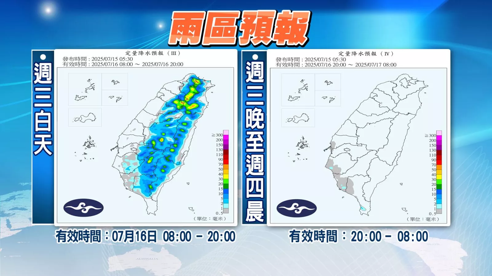 直到明天中、南部都有短暫雨,