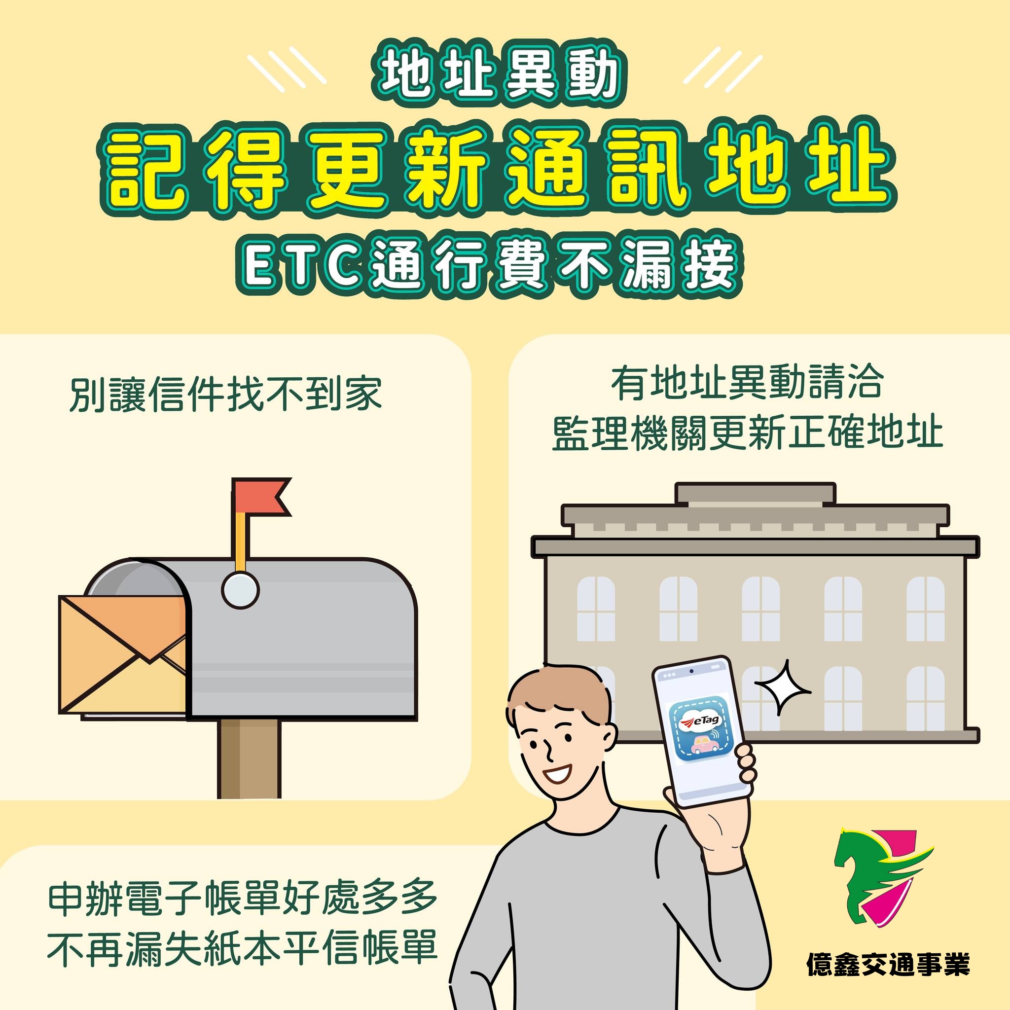 🚗 避免ETC通行費逾期遭罰,地址有異動,記得更新愛車通訊地址 📞📞