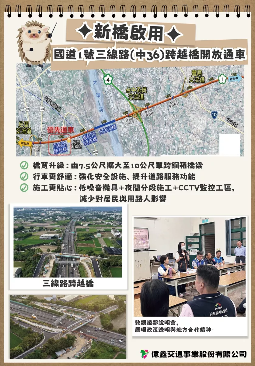 三線路(中36)跨越橋提前完工,114年9月19日中午12時正式開放通車!