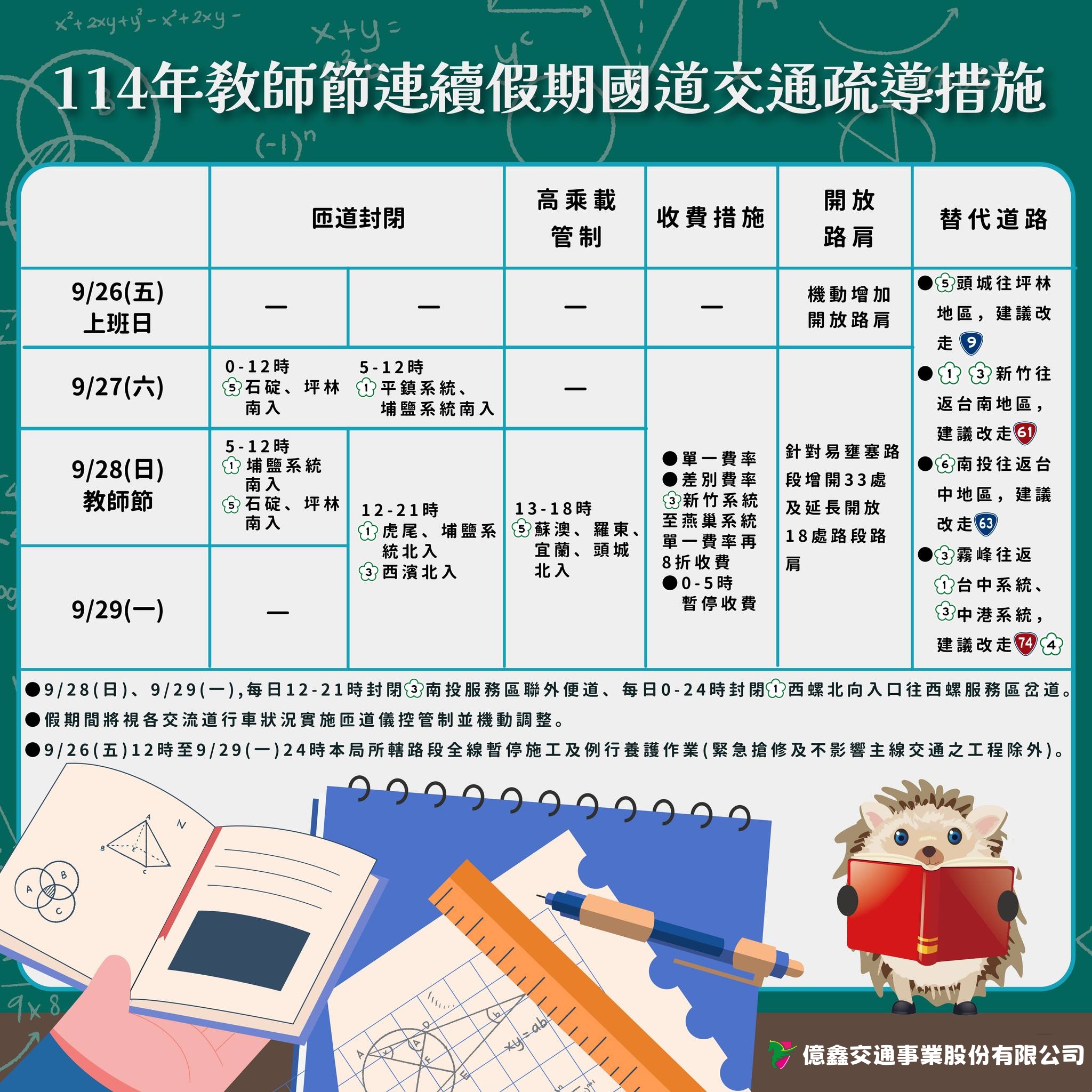 國道交通疏導措施先瞭解 🛣️教師節連假即將到來囉~