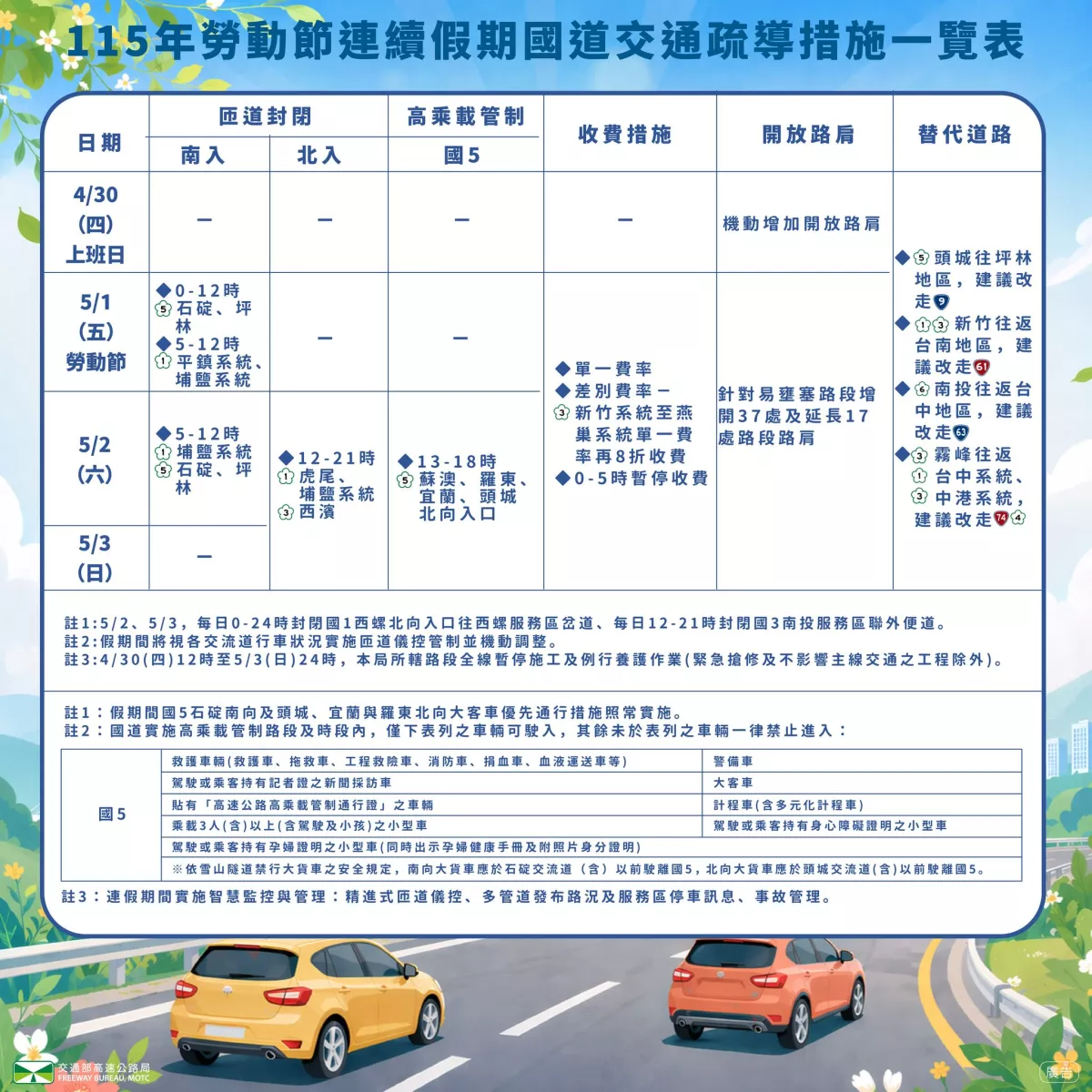 【勞動節連假國道攻略】先看再上路,避開車潮更順暢❗