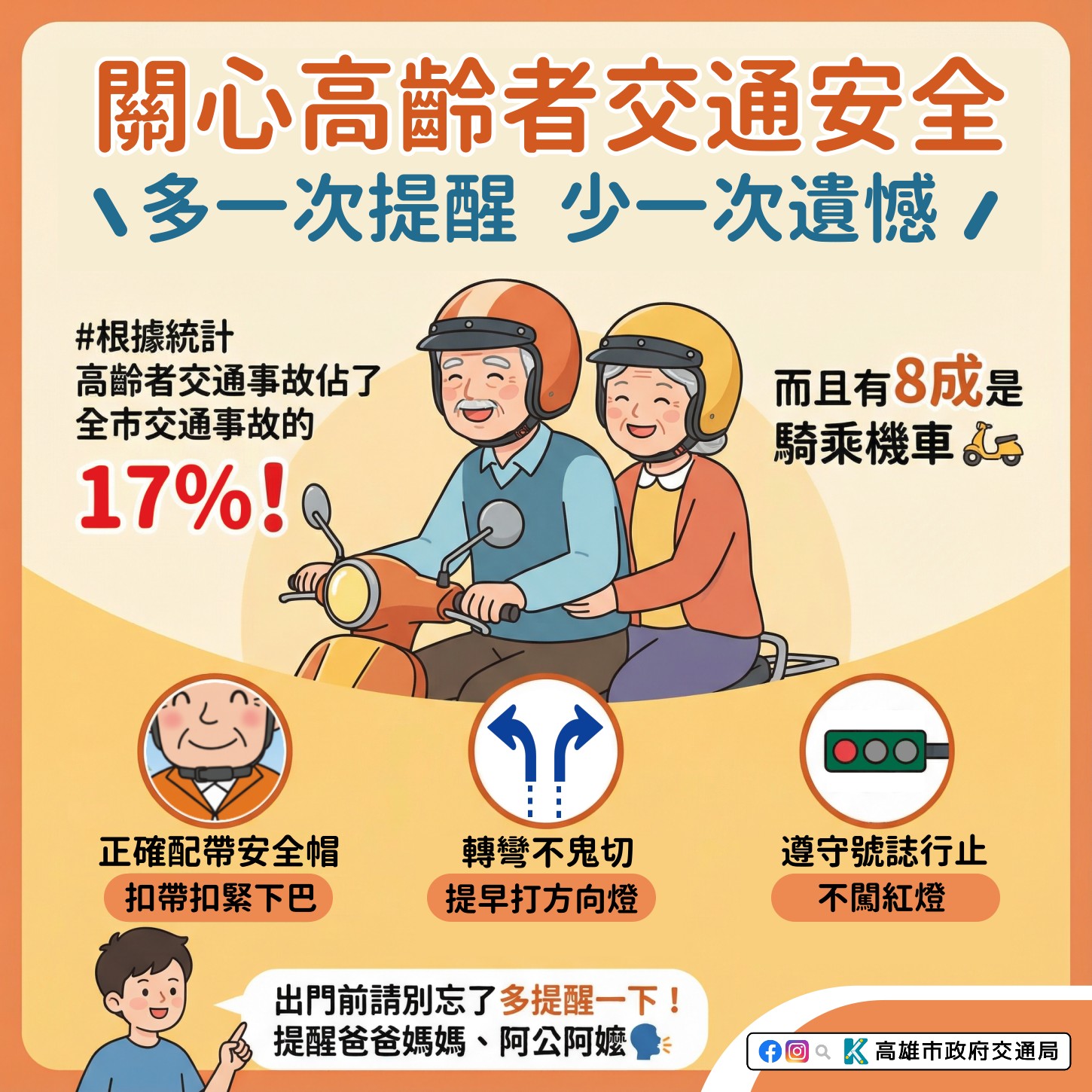 #根據統計高齡者交通事故佔了全市交通事故的 17%❗
