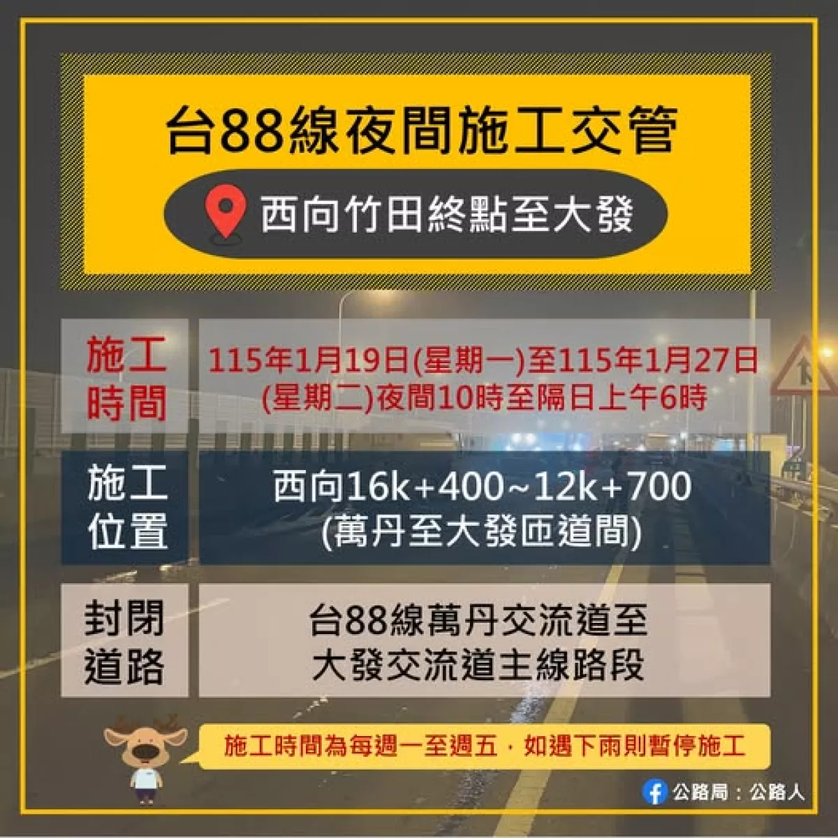 🙏 施工期間請依現場指示行駛、減速慢行❗❗
