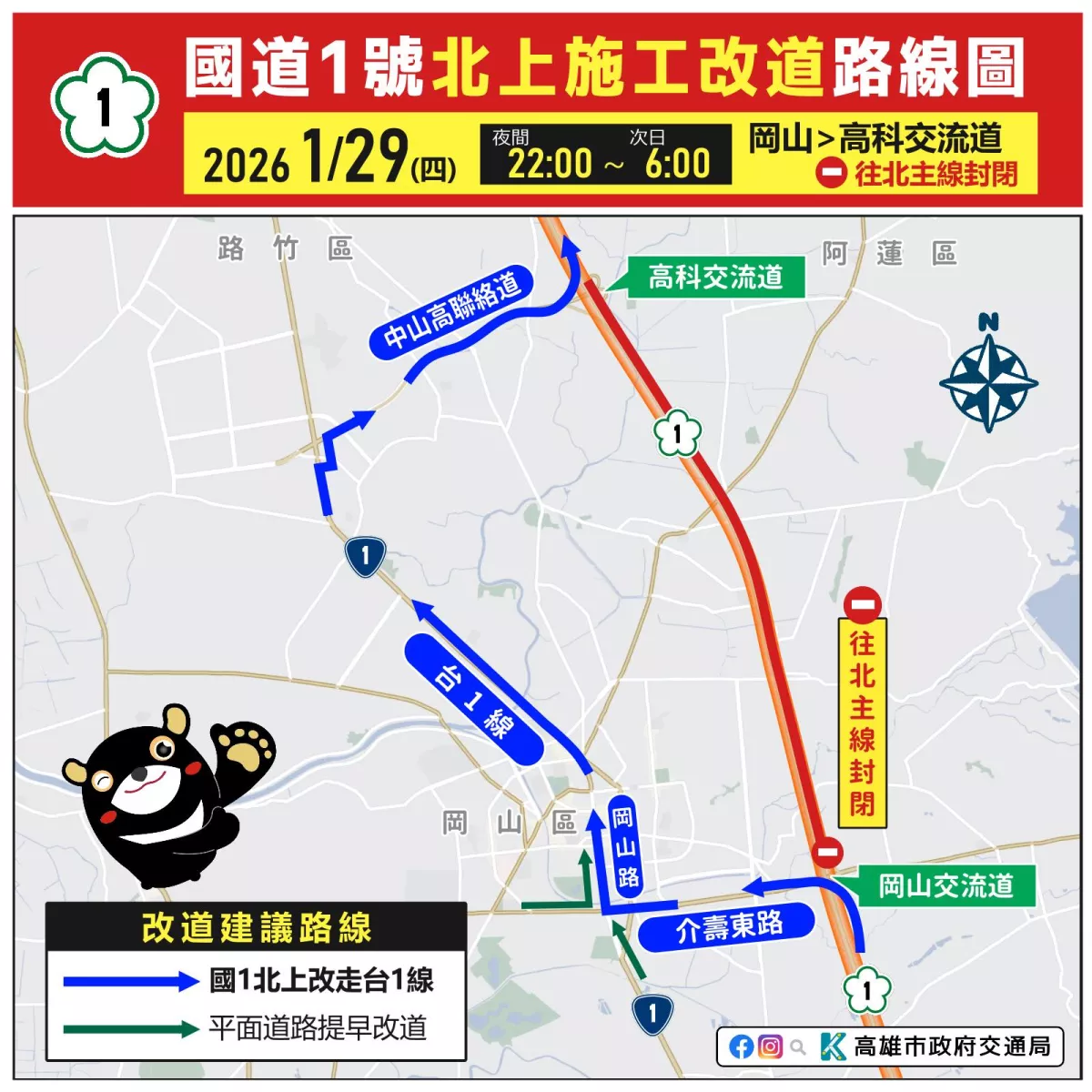 #高速公路局第二新建工程分局 為辦理相關工程🚧🚧,預定於1/29(四)夜間22:00至次日上午6:00封閉 🚫